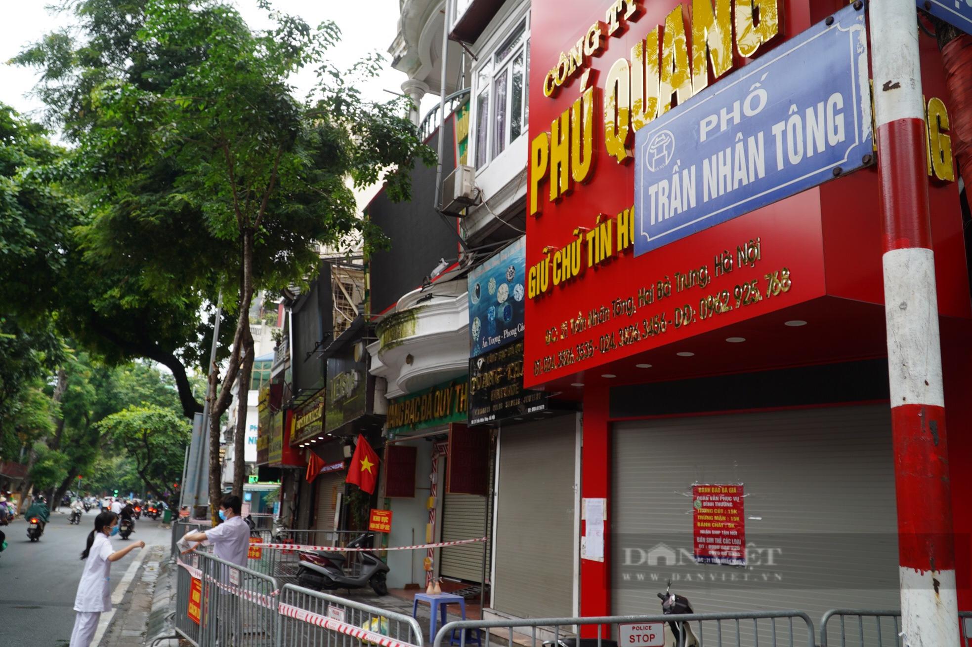 Trưa 24/9, một dãy phố Trần nhân Tông bị phong toả sau khi có ca dương tính SARS-CoV-2. Ảnh: Gia Khiêm