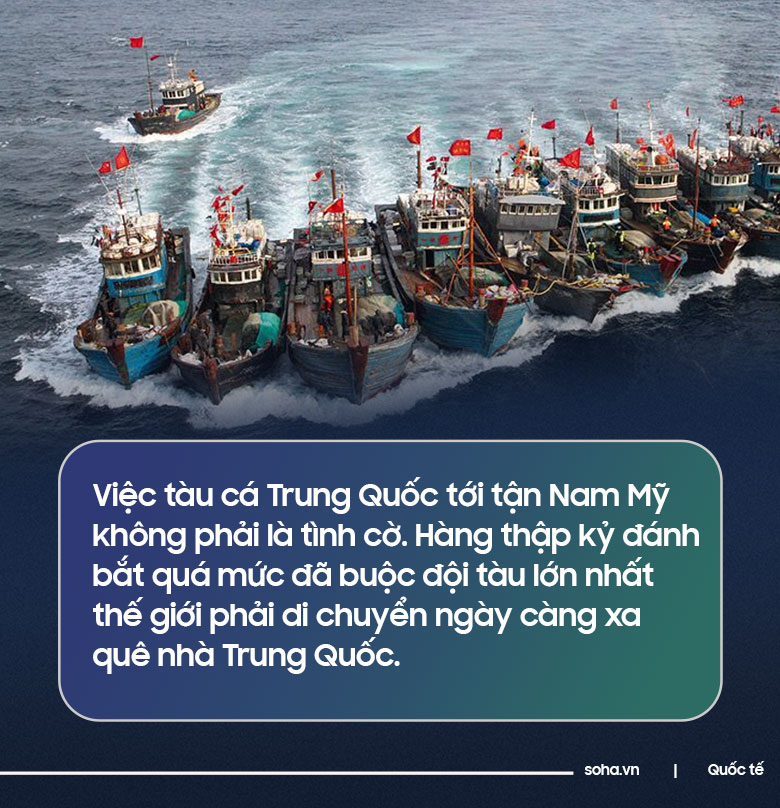 Việc tàu cá Trung Quốc tới tận vùng biển xa xôi này không phải là tình cờ. Hàng thập kỷ đánh bắt quá mức đã buộc đội tàu lớn nhất thế giới phải di chuyển ngày càng xa quê nhà Trung Quốc.