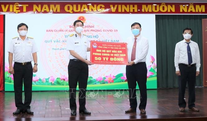 Ngày 25/9 tại TP Hồ Chí Minh, Đoàn công tác Tổng Công ty Tân cảng Sài Gòn (Quân chủng Hải quân) đã đến Kho bạc Nhà nước TP Hồ Chí Minh trao tặng kinh phí ủng hộ 50 tỷ đồng cho Quỹ vaccine phòng COVID-19 của Chính phủ thông qua Bộ Tài chính.Theo đó, thực hiện phong trào thi đua đặc biệt “Quân đội cùng cả nước chung sức đồng lòng phòng, chống và chiến thắng đại dịch COVID19”, Tổng Công ty Tân cảng Sài Gòn trao tặng 50 tỷ đồng để đóng góp vào Quỹ vaccine phòng COVID-19 của Chính phủ. Đây cũng là hoạt động của Tân cảng Sài Gòn nhằm góp sức cùng với toàn Đảng, toàn dân, toàn quân và các tổ chức chính trị, xã hội sớm ngăn chăn, đẩy lùi đại dịch.