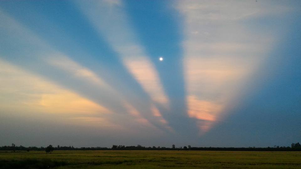 - Anti-crepuscular rays (anti-solar rays/tia sáng Mặt Trời ngược): Do không được cung cấp thêm ảnh vùng trời phía Tây lúc mặt trời lặn, người viết cho rằng đây cũng là một giả thiết.