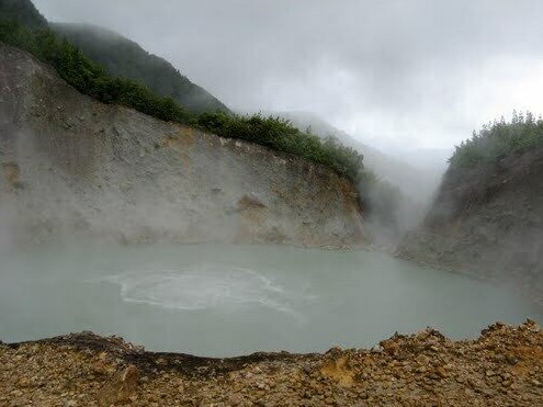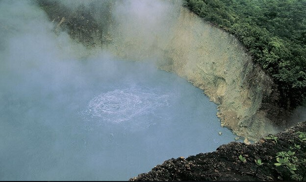 Hồ nước này không phải là địa điểm nghỉ mát lý tưởng. Bên trong nó ẩn chứa những bí mật của lớp vỏ Trái đất. Hồ nước kỳ lạ này nằm trên đỉnh núi Watt trong Công viên Quốc gia Morne Trois Pitons. Nước ở đây không thích hợp để du khách thư giãn hay thăm quan. Nó sôi sùng sục quanh năm. “Nước sôi lửa bỏng” không chỉ là một tục ngữ dân gian mà nó rất đúng cho hồ nước này. Du khách không nên kiểm tra tính xác thực ở đây vì uống hoặc tắm nước trong này sẽ dẫn đến tử vong, hoặc ít nhất là bỏng nặng.
