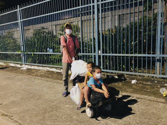 Đặt hai đứa con (đứa lớn gần năm tuổi, đứa nhỏ gần ba tuổi) lên chiếc xe tự chế bằng gỗ, anh Đặng Văn Liêm (43 tuổi, ngụ tại huyện Trảng Bom, tỉnh Đồng Nai) thở dài: “Suốt bốn tháng nay tôi mất việc, chỉ quanh quẩn ở nhà, tiền bạc không có. Đồ ăn giúp cả gia đình sống cầm cự mấy tháng qua đều do các nhà hảo tâm hỗ trợ. Tôi cùng hai đứa con đã bắt đầu đi bộ về quê từ Trảng Bom, Đồng Nai lúc 10h sáng. Bây giờ đã gần 21h tối rồi mà mấy cha con mới đi tới Bình Chánh thôi”.