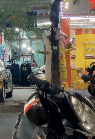 Đang ngồi trên vỉa hè uống nước ngon lành. Cả hai phát hiện quán nước phía đối diện có trưng bày một con rối làm bằng hơi. Loại mà nhiều cửa hàng hay đặt phía trước để "mời chào" khách.