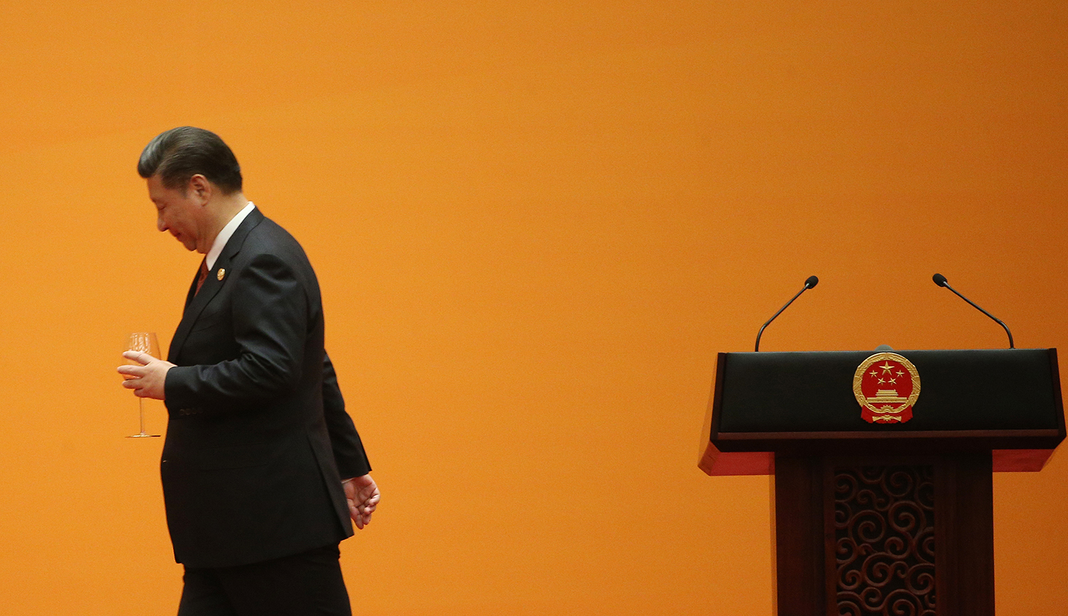 Chủ tịch Trung Quốc Tập Cận Bình rời đi sau khi nâng ly chúc mừng trong bữa tiệc chào mừng Diễn đàn Vành đai -Con đường tại Đại lễ đường Nhân dân ở Bắc Kinh vào năm 2017. Ảnh: Getty