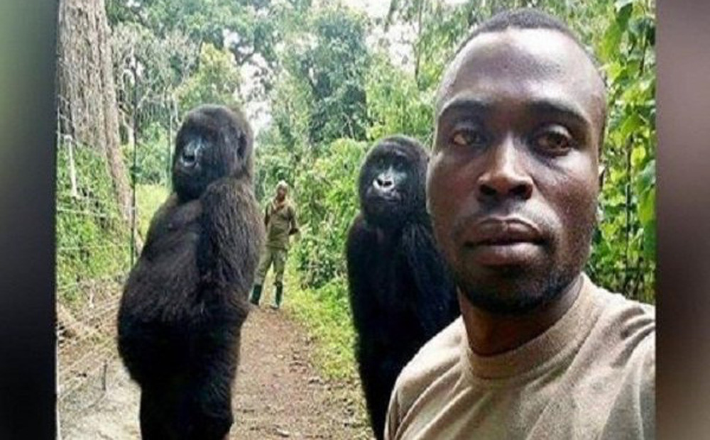 Khỉ đột Ndakasi được nhiều người biết đến khi làm dáng chụp cùng nhân viên kiểm lâm ở Congo, bức ảnh này đã tạo ra cơn sốt lan truyền khắp mạng xã hội.