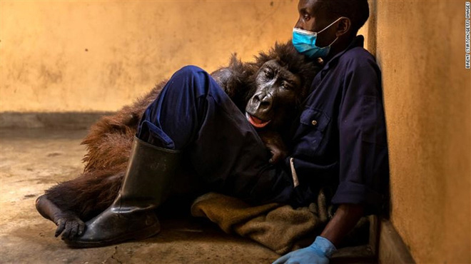 Ndakasi dành những phút cuối cùng trong vòng tay yêu thương của người chăm sóc và cũng là người bạn lâu năm của cô ấy, Andre Bauma".