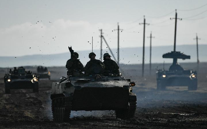 Quân đội Nga tập trận tại dãy Opuk ở Crimea. Ảnh RNZ