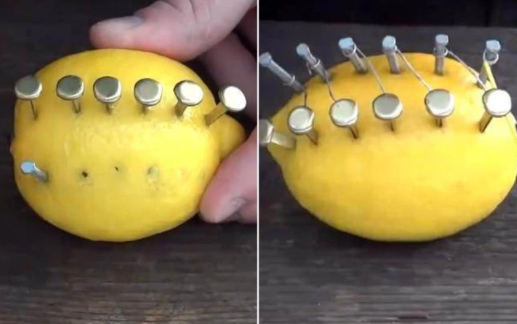 Theo đó, anh đã sử dụng những chiếc đinh còn mới để cắm hai hàng lên một quả chanh vàng. Sau đó, anh tiếp tục sử dụng hai sợi dây đồng rất mỏng và buộc chúng vào hai hàng đinh thép trên quả chanh.