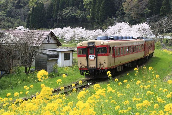 Vẻ đẹp của đường sắt Isumi được tạo nên nhờ sự kết hợp của các loài hoa đang kỳ nở rộ. Hình ảnh đoàn tàu màu vàng chạy giữa ruộng hoa cải nở rộ vào mùa hè hay hàng hoa anh đào phất phơ vào mùa xuân trông giống như một tác phẩm nghệ thuật bằng tranh vậy.
