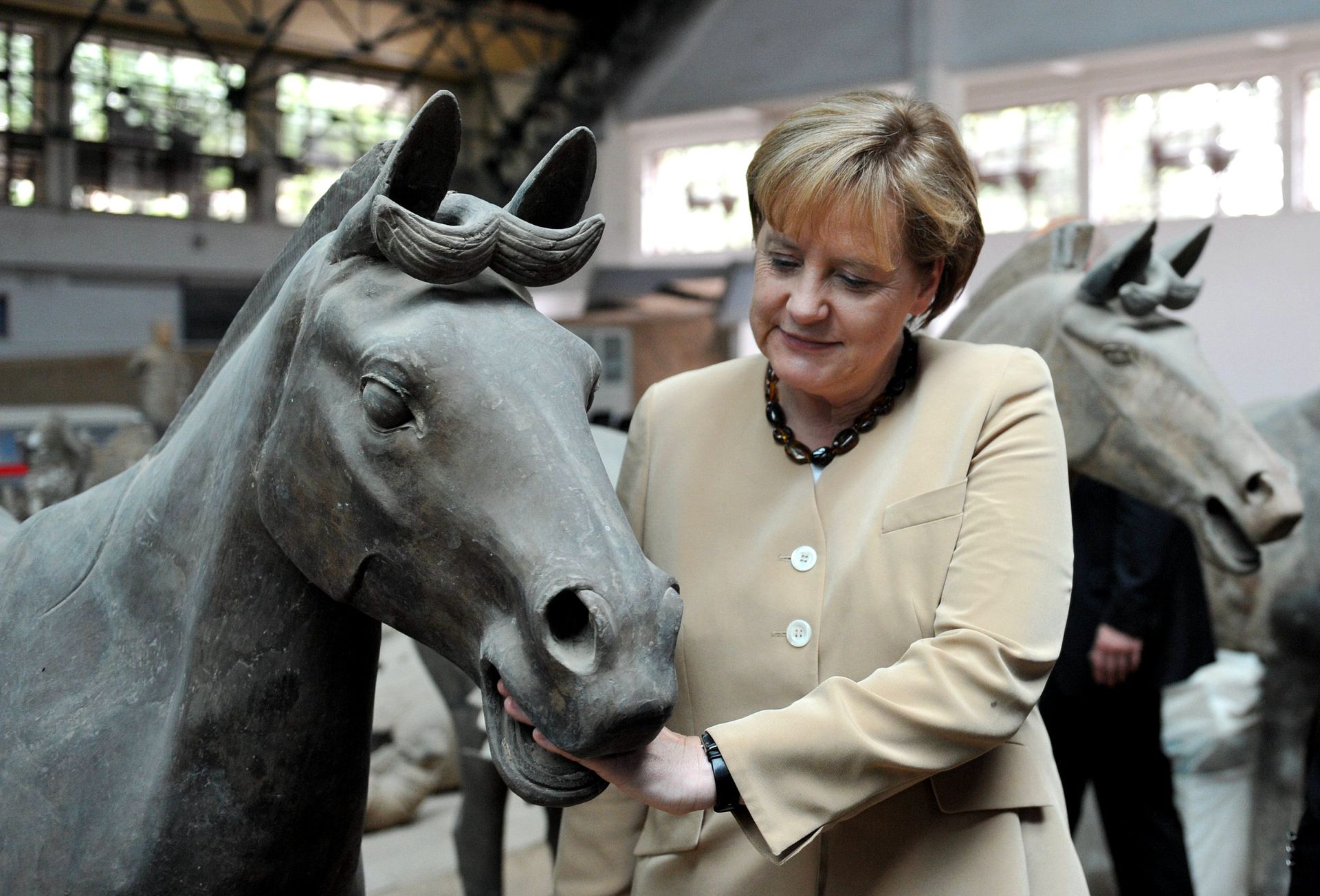 Ngày 17/7/2010, Thủ tướng Đức Merkel đã đến thăm Bảo tàng Chiến binh đất nung của Tần Thủy Hoàng tại Tây An. Ảnh: Visual China