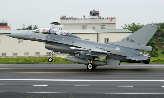 Tiêm kích F-16 Đài Loan hạ cánh trên đường cao tốc trong cuộc diễn tập tháng 5/2019. Ảnh: Reuters.