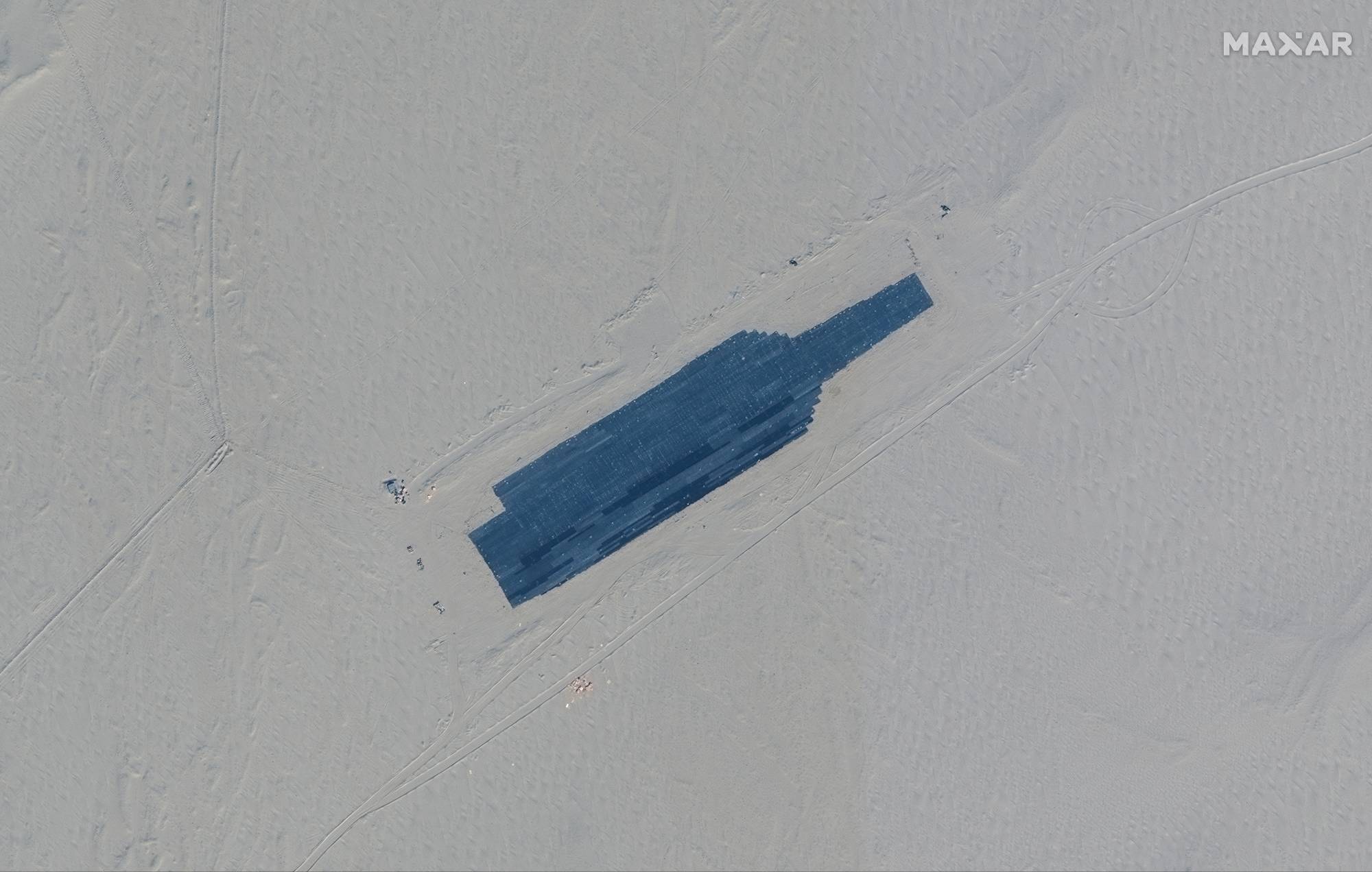 Theo như hãng Maxar ngày 7.11 công bố ảnh vệ tinh cho thấy vật thể giống tàu sân bay hạt nhân Mỹ và ít nhất hai tàu khu trục lớp Arleigh Burke tại sa mạc Taklamakan, khu tự trị Tân Cương, với hình ảnh chụp vệ tinh mới được công bố tiết lộ vật thể giống một tàu sân bay Mỹ và hai tàu khu trục tên lửa tại một sa mạc hẻo lánh ở phía tây Trung Quốc.