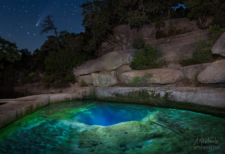 Cảnh đẹp ma mị về đêm ở Jacob's Well (ảnh: Daily Star)