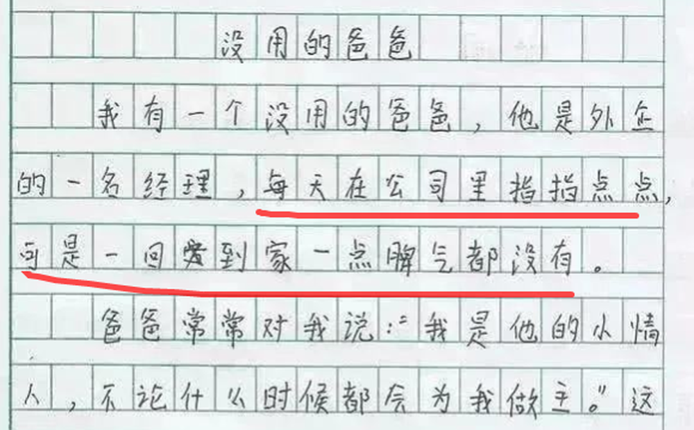 Bài văn "bố em là vô dụng" của một cô bé học sinh tiểu học tại Trung Quốc mới đây đã được chia sẻ sôi nổi trên mạng xã hội Weibo nước này.