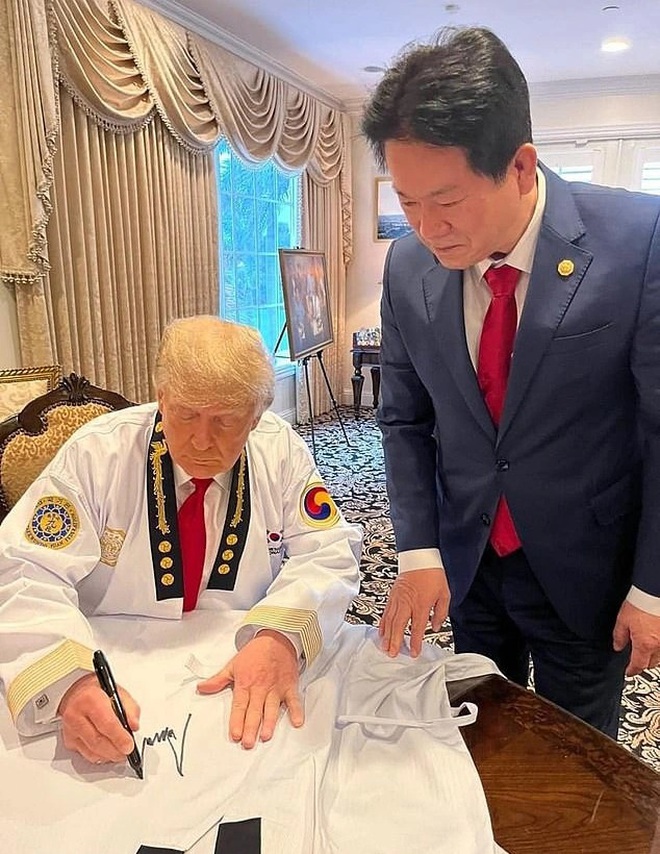 Cuối tuần qua, Chủ tịch Tổng hành dinh Taekwondo Thế giới (Kukkiwon) Lee Dong-seop đã tới thăm cựu Tổng thống Trump tại nhà riêng của ông ở khu nghỉ dưỡng Mar-a-Lago tại Palm Beach, Florida.