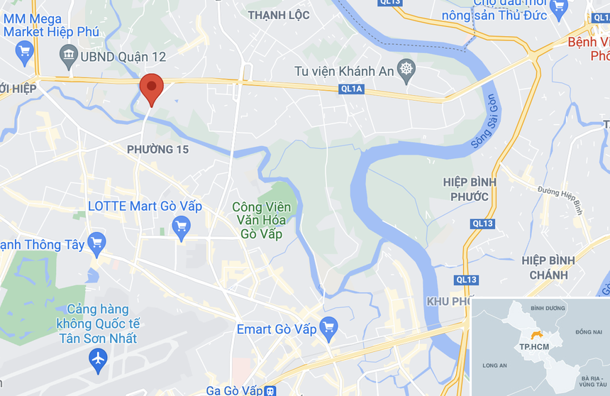 Vụ cháy xảy ra trên đường Tô Ngọc Vân, quận 12. Ảnh: Google Maps.