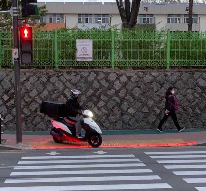 2. Hàn Quốc đặt đèn giao thông trên mặt đất để những người đang nh́n vào điện thoại vẫn có thể nh́n thấy đèn giao thông.