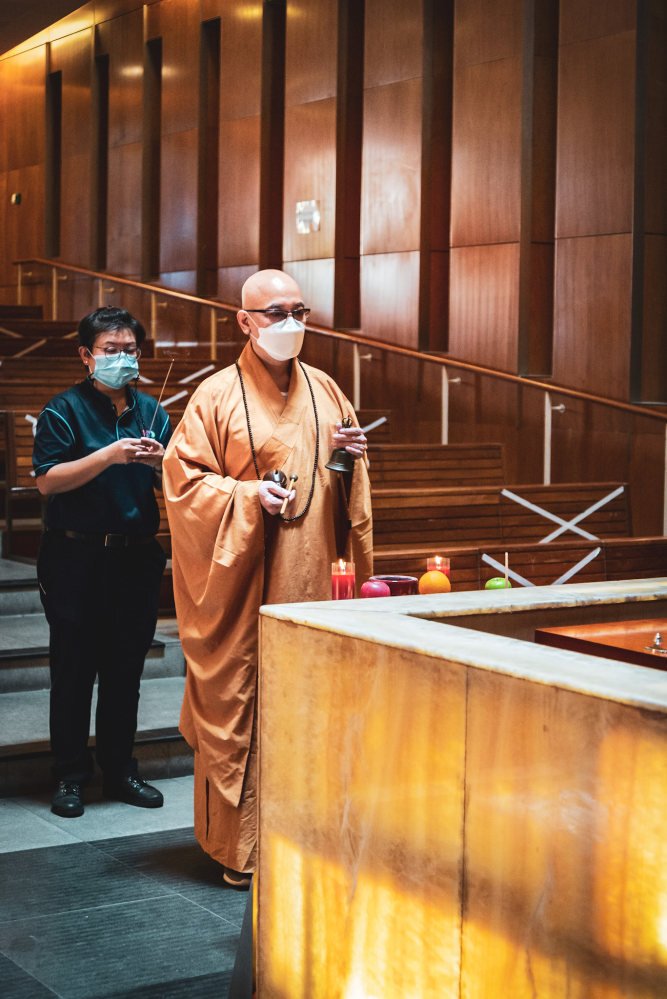 Nhà sư Shi Ming Qing làm các nghi thức tang lễ cho người quá cố là bệnh nhân Covid-19. Ảnh: Marielle Descalsota