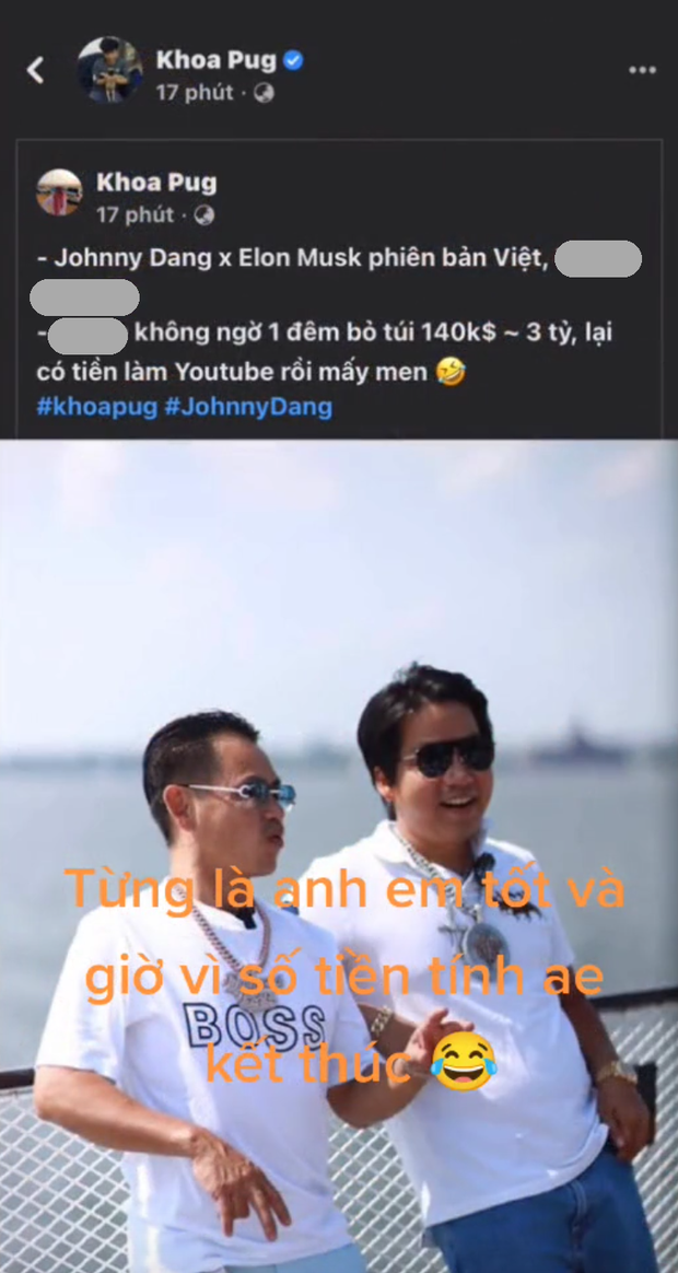 Kéo dài dai dẳng cả tháng nay nhưng ồn ào của Khoa Pug và Johnny Đặng vẫn đang là tâm điểm chú ý của dân mạng. Bên cạnh việc quan tâm đến những tình tiết mới, nhiều người còn phát hiện ra các chi tiết đã có từ trước, từng gây chú ý về mối quan hệ của đôi bạn thân cũ.