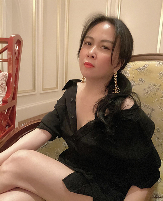 Không hề thua kém những người em thân thiết trong showbiz, nữ doanh nhân Phượng Chanel cũng trẻ trung hơn với kiểu kết hợp áo sơ mi và short ngắn theo mốt giấu quần.