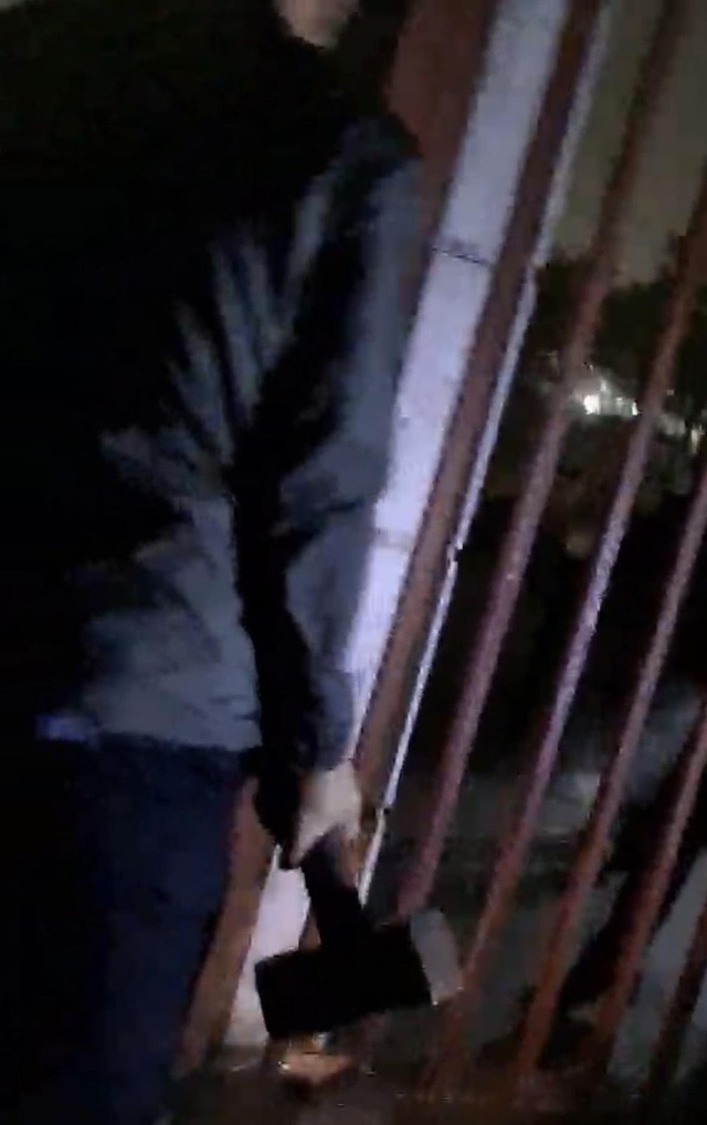 Người đàn ông cầm búa trước cửa Nhà máy Cà phê Trung Nguyên Bắc Giang vào rạng sáng 20/11 (Ảnh cắt từ clip doanh nghiệp cung cấp - Nguồn: Infonet)