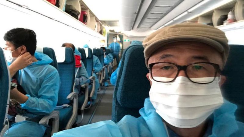 Ảnh chụp tác giả trên máy bay "giải cứu" của Vietnam Airlines về nước tháng 9/2020.
