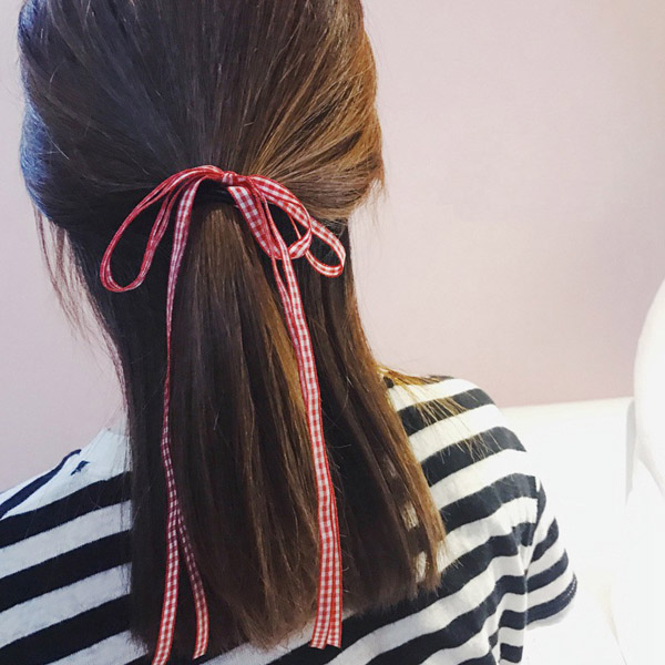 Ruy băng dài và nhỏ như thế này sẽ tạo điểm nhấn nhẹ nhàng cho tóc buộc nửa đầu. Bạn có thể tạo kiểu khi đi làm, đi chơi hay đi học.
