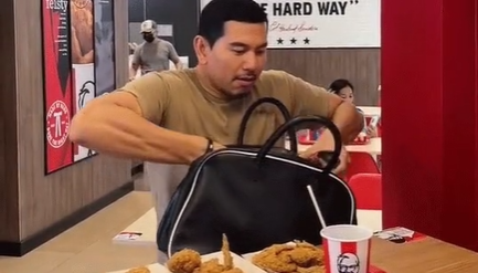 Old  Default Đi ăn gà rán thôi mà mang theo cả túi du lịch, lát sau người đàn ông lôi ra 1 thứ mà ai cũng phải "đứng hình"