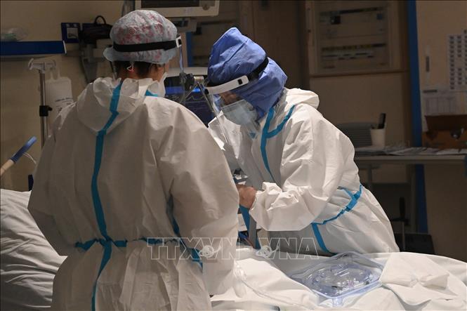 Nhân viên y tế điều trị cho bệnh nhân nhiễm COVID-19 tại bệnh viện ở Bologna, Italy, ngày 3/12/2021. Ảnh: THX/TTXVN