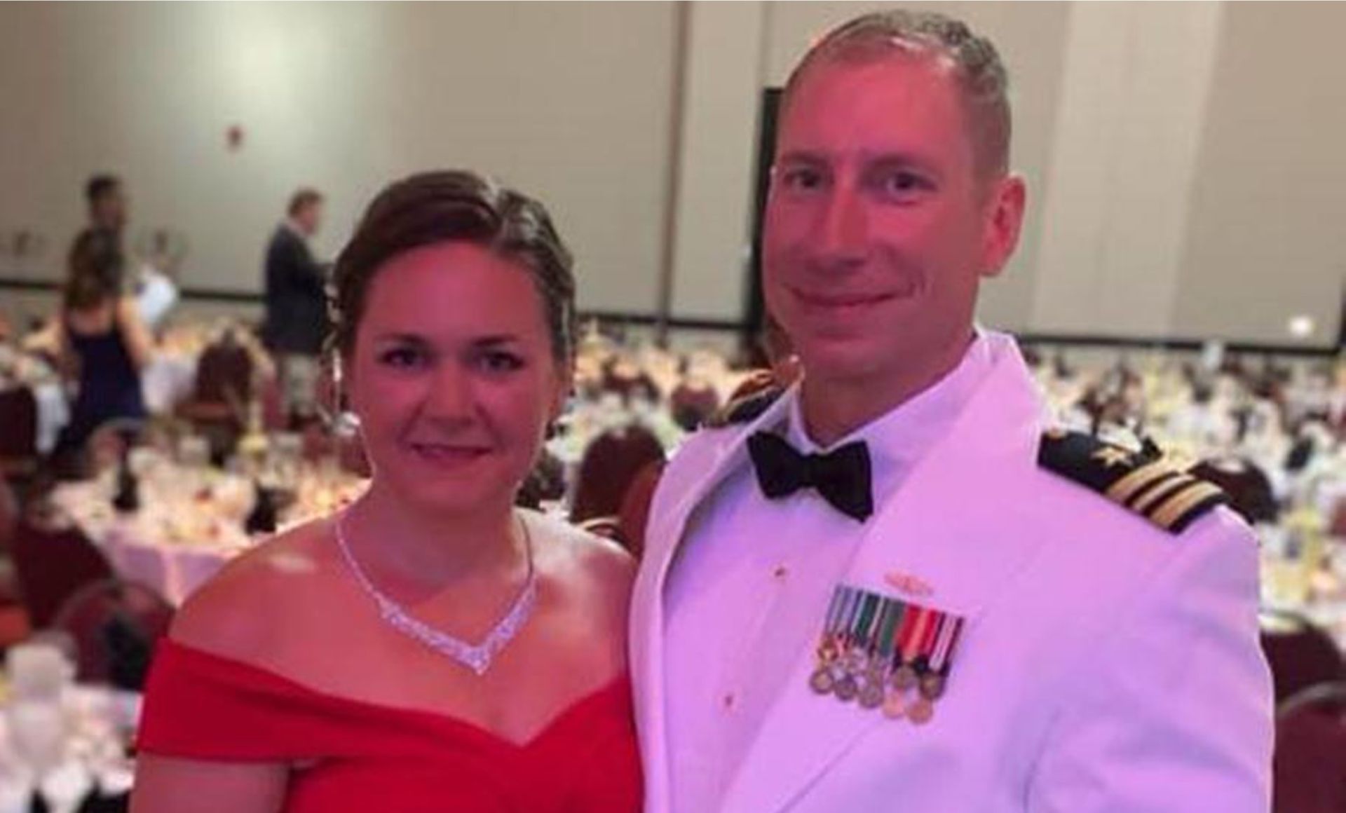 Trung tá Hải Quân Mỹ Lucian Kins và vợ trong một buổi tiệc. (Hình: Facebook)