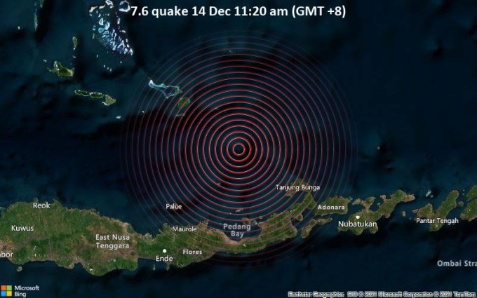Trận động đất xảy ra cách thị trấn Maumere, đảo Flores 91 km về phía bắc, ở độ sâu 18,5 km lúc 11h20 (10h20 giờ Hà Nội). Trung tâm Cảnh báo Sóng thần Thái Bình Dương cho biết "sóng thần nguy hiểm có thể xảy ra đối với các bờ biển nằm trong phạm vi 1.000 km tính từ tâm chấn".