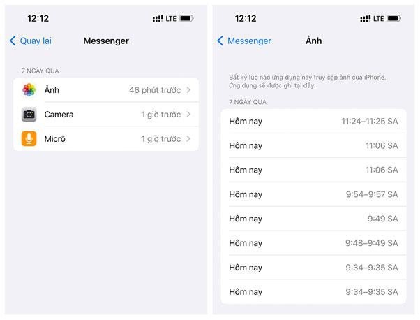Truy cập cảm biến và dữ liệu: những ứng dụng truy cập dữ liệu hoặc cảm biến trong 7 ngày qua.