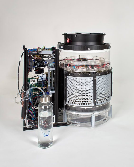 Chiếc máy Water Harvester của công ty khởi nghiệp Waha có thể chuyển đổi hơi nước từ không khí, ngay cả trong điều kiện khô cằn nhất. Chiếc máy chạy bằng năng lượng mặt trời và từng được thử nghiệm tại sa mạc Mojave ở California.