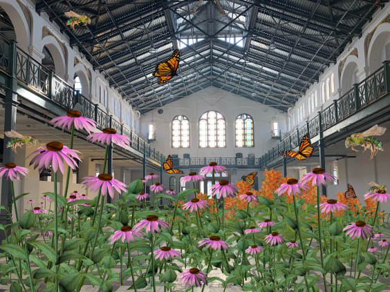 Điều ǵ sẽ xảy ra nếu thủ đô nước Mỹ trở thành một hệ sinh thái hoang dă? Câu hỏi đó là cơ sở cho dự án thực tế tăng cường (AR) của nghệ sĩ Tamiko Thiel, người đă biến một trong những pḥng triển lăm thành một môi trường sống của hoa dại.