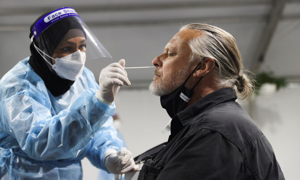 Nhân viên y tế lấy mẫu xét nghiệm Covid-19 tại sân bay Sydney, Australia hôm 29/11. Ảnh: Reuters.
