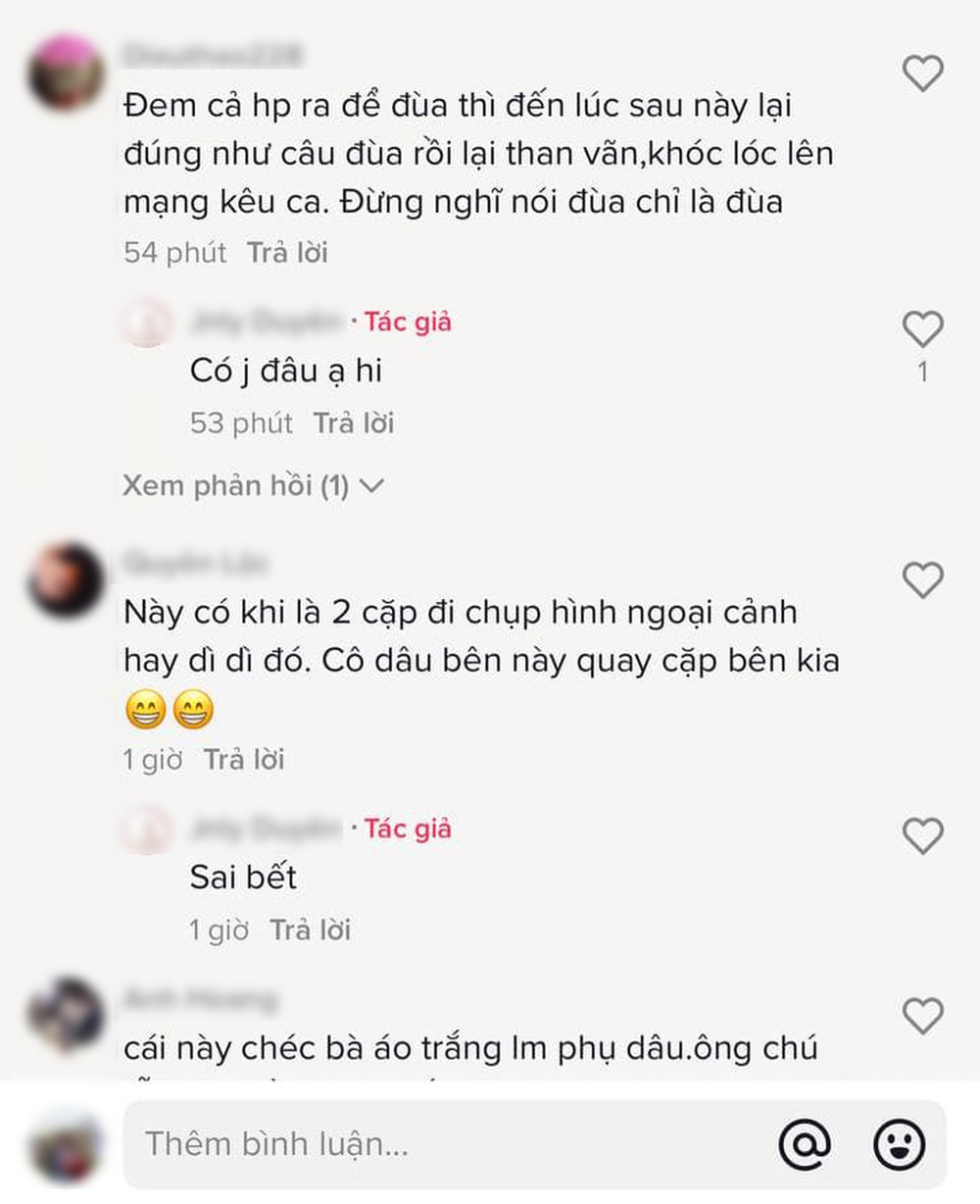 Dưới phần bình luận, 2 cô gái phủ nhận tất cả những dự đoán của mọi người. Còn nói rằng mình bị ép cưới, ế nên đành chấp nhận, vừa vui vừa buồn, dù sao cũng phải cười…