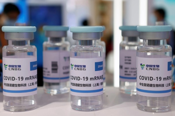 Các lọ được dán nhãn minh họa vaccine Sinopharm phòng COVID-19 được trưng bày tại Hội chợ Thương mại Dịch vụ Quốc tế Trung Quốc (CIFTIS) năm 2021 ở Bắc Kinh, Trung Quốc ngày 3 tháng 9 năm 2021. Ảnh: REUTERS / Florence Lo