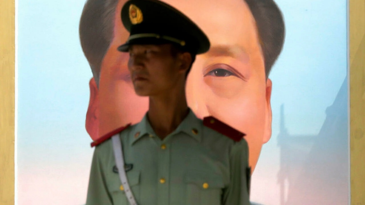 Ảnh minh họa : Một công an Trung Quốc trước chân dung Mao Trạch Đông ở Thiên An Môn, Bắc Kinh, 01/09/2017. AP - Andy Wong