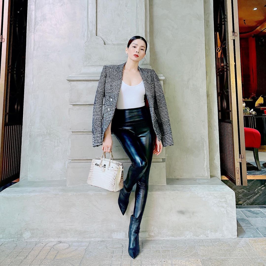 Old  Default Hoàng Thùy Linh, Minh Hằng mê mốt quần "bóng như bôi mỡ" gây ảo giác