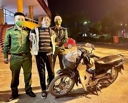 Hiếu bị bắt tại Lào Cai cùng chiếc xe máy hắn sử dụng để trốn chạy. Ảnh: Công an Lào Cai