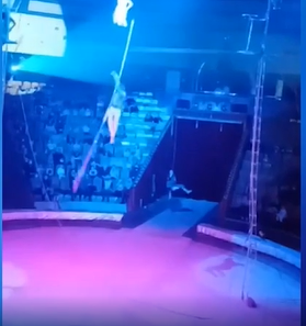 Diễn viên xiếc trượt chân ngã từ độ cao 6 m khi biểu diễn đi thăng bằng tại rạp xiếc ở Tyumen, Nga ngày 25/12.
