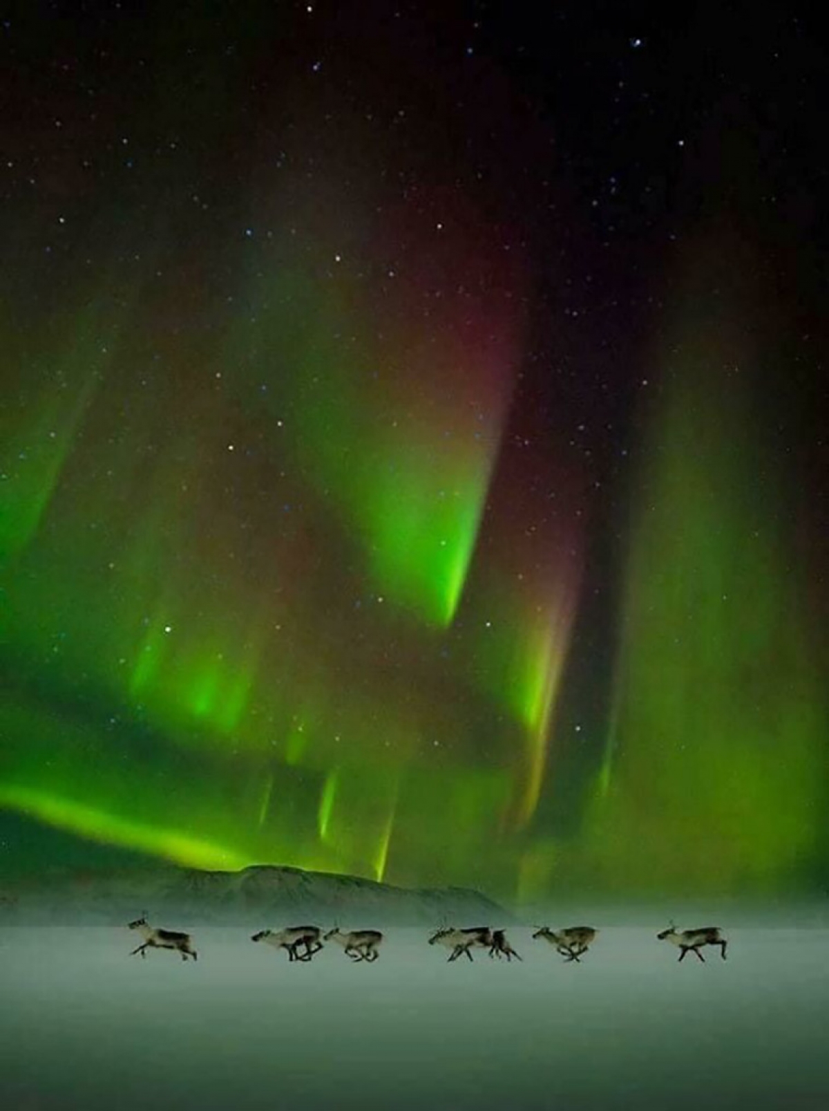 Những chú tuần lộc dưới bầu trời Bắc cực quang.