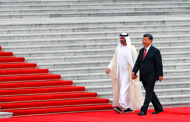 Thái tử tiểu vương Abu Dhabi của Các Tiểu vương quốc Arab thống nhất (UAE) Sheikh Mohamed bin Zayed Al Nahyan và Chủ tịch Trung Quốc Tập Cận Bình tại một sự kiện ở Bắc Kinh năm 2019. Ảnh: CNN