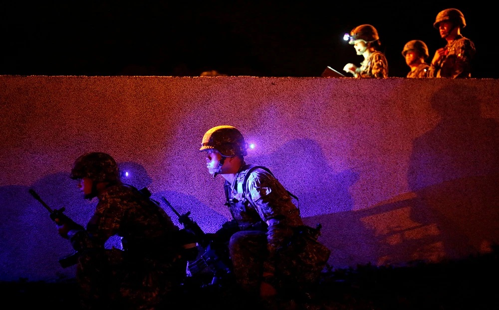 Các binh sĩ Đài Loan tham gia cuộc diễn tập quân sự Han Kuang thường niên. Ảnh: Reuters