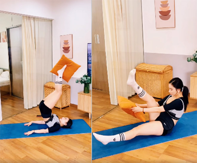 Cũng là một Gymer thích sáng tạo, nghĩ ra những bài tập kết hợp với các đồ vật sẵn có tại nhà, Trang Lê đã mang đến cho các fan chuỗi bài tập rất độc đáo kết hợp với gối tựa lưng sofa.
