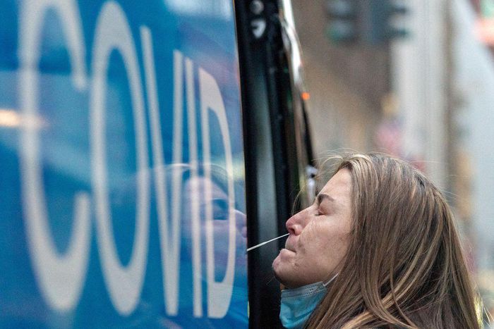 Một phụ nữ được lấy mẫu xét nghiệm ở New York. Con số này bao gồm cả những ca bệnh tồn đọng từ trước đó. Hãng tin Bloomberg cũng cho rằng nhiều bang ở Mỹ đã chậm trễ trong việc công bố số ca bệnh kỳ nghỉ lễ, khiến con số thống kê ngày 3/1 bất ngờ tăng vọt.