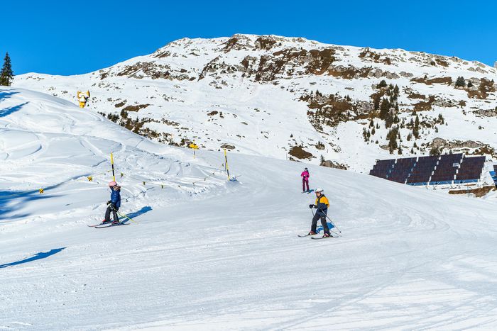 Những người có trình độ nhất định mới có thể đi cáp treo lên đỉnh núi và trượt từ trên đó xuống. Những người mới bắt đầu làm quen hay trẻ em sẽ trượt ở những con dốc nhỏ ngay ngôi làng