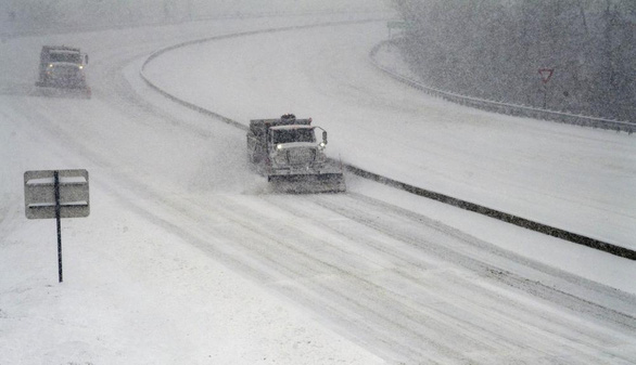 Những chiếc xe dọn tuyết trên đường cao tốc ở bang Virginia, Mỹ ngày 16-1