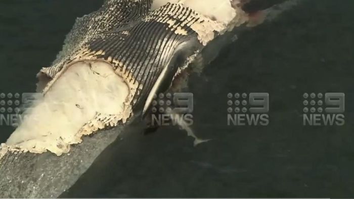 Những con cá mập đã bị thu hút bởi một xác cá voi khổng lồ.