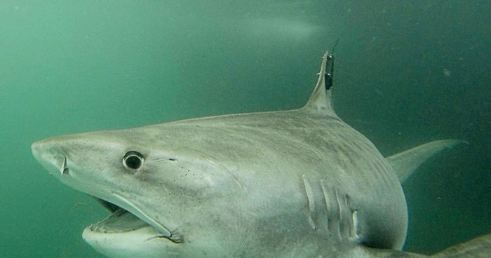 Đây là một con cá mập hổ có tên là Collette, nó đã được tìm thấy khi bơi gần Đảo Tây Bắc ngoài khơi Queensland.